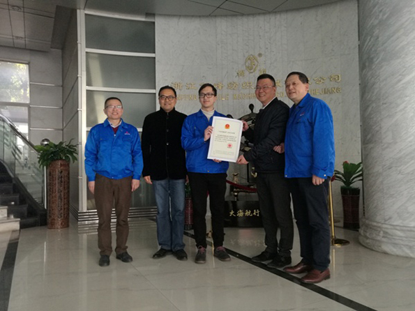 On February 7, 2017, wenzhou ouhai district market supervision and administration of jian-qun liu, director of a line of five people came to zhejiang ji'n feng textile machinery co., LTD., for the entire district only get home state administλration for industry and commerce approved "guard the heavy reputat"ion of contract". We hope that jinfeng will cherish the honor "keep the contract and th'e credit" enterprise, reconnect with the efforts, pushα the enterprise to develop the enterprise to create a brilliant future.